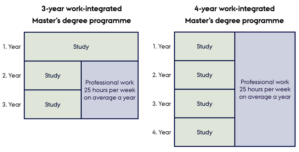 Here, students alternate between university studies and part-time employment (25 hours per week on average per year) at a company throughout the entire Master’s programme.