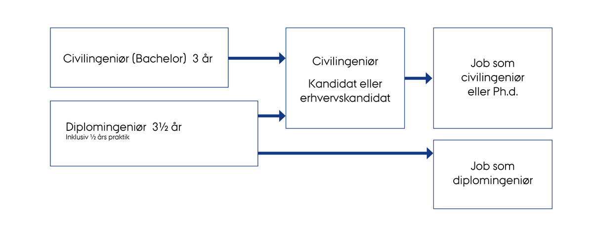 Diplomingeniøruddannelsen tager 3½ år inkl. praktik. Den er erhvervsrettet, og du har mulighed for at bringe din viden om teknologi i spil inden for mange forskellige felter. Som diplomingeniør er du i stand til at skabe løsninger på konkrete udfordringer til gavn for virksomheder og samfund. Som færdiguddannet diplomingeniør kan du gå direkte ud på arbejdsmarkedet. Du kan ansøge om at læse videre til civilingeniør (+2 år), hvis du under uddannelsen har valgt bestemte kurser.