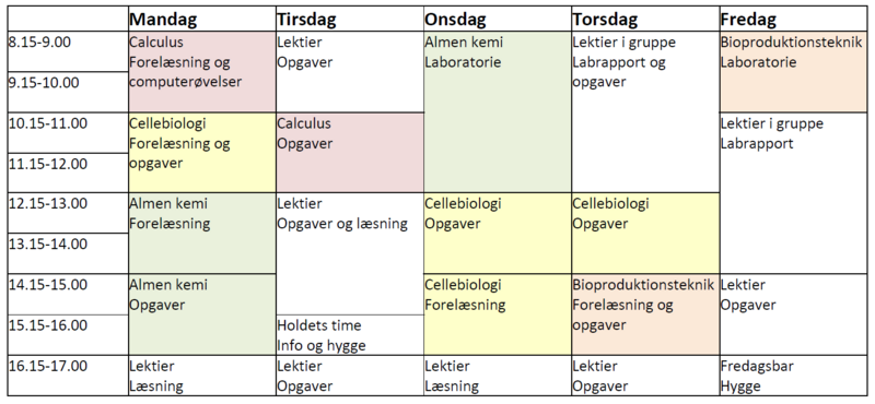 Din hverdag på studiet, som foregår i og omkring Universitetsparken, er præget af forelæsninger, projektarbejde, klasseundervisning, laboratoriearbejde og opgaveløsninger, og du følger typisk 3-6 kurser om ugen. Derudover er der lektielæsning, som ofte foregår med dine studiekammerater. Aftenerne er også jævnligt brugt på sociale arrangementer på studiet. Og hver fredag er der fredagsbar flere steder rundt omkring på universitetet