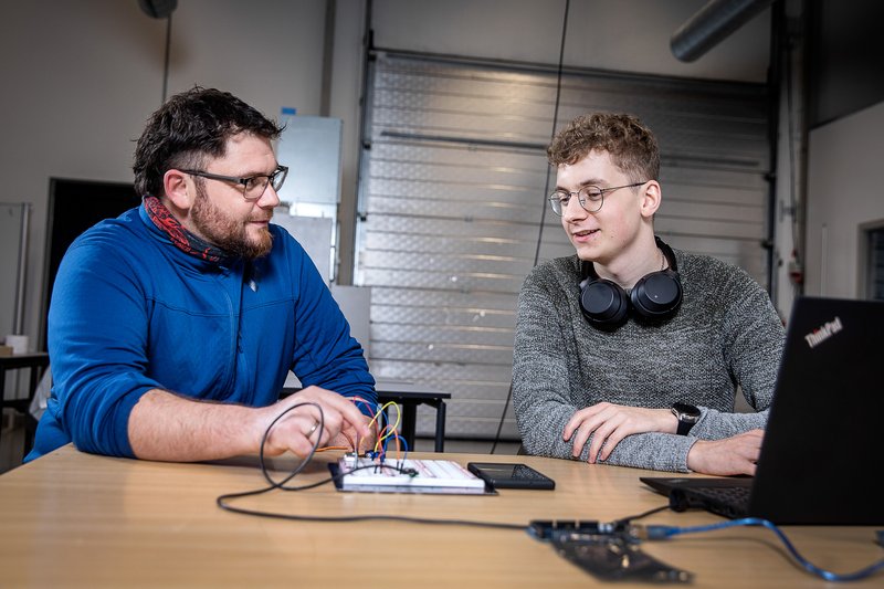 I energilaboratoriet har vi adgang til tekniske faciliteter, der gør det muligt at eksperimentere med en bæredygtig elforsyning. Målet er at vores studerende har mulighed for at få praktisk erfaring med at designe elektriske systemer og udvikle nye produkter, der producerer og forbruger energi.
