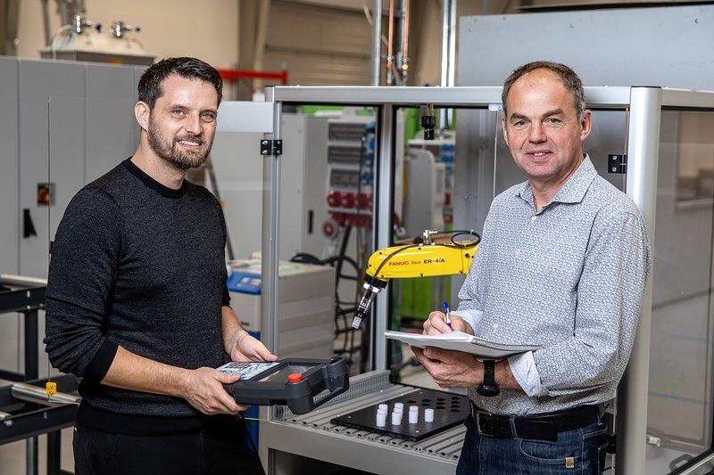 Laboratoriet råder over to robotter - en industrirobot og en deltarobot. Robotterne giver mulighed for at arbejde med automationsløsninger, specifikke gribere og i det hele taget konkrete løsninger til problemstillinger, som hentes ind i samarbejde med industripartnere.