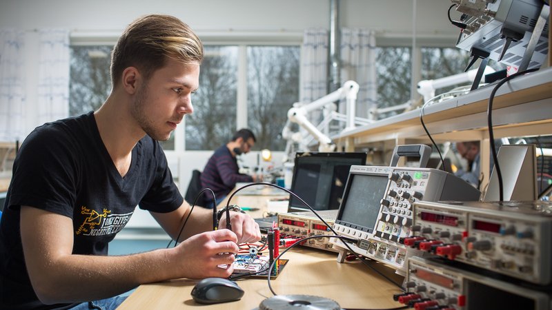 I elektroniklaboratoriet har de studerende adgang til avancerede måleinstrumenter til at designe, udvikle og verificere elektriske kredsløb. Blandt andet indeholder elektroniklaboratoriet udstyr som loddestationer, strømforsyninger, oscilloskoper og logik-analysatorer. Elektronikingeniøruddannelsen i Herning har et særligt fokus på embedded elektronik, hvilket er en kombination af elektronik og software.